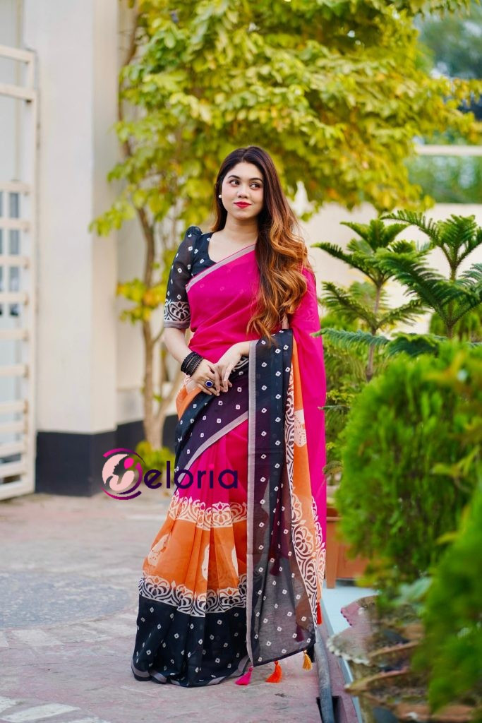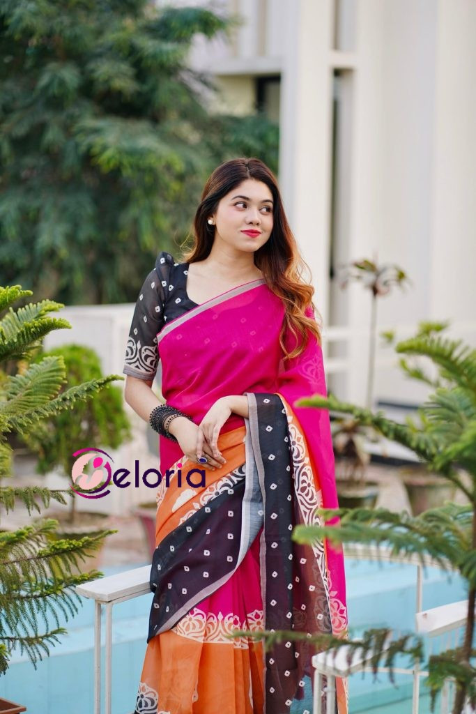 দেখতে অসম্ভব সুন্দর এই প্রায় ১২ হাতের প্রিমিয়াম সেমি মসলিন সিল্ক শাড়ী খুবই প্রিমিয়াম ও আরামদায়ক